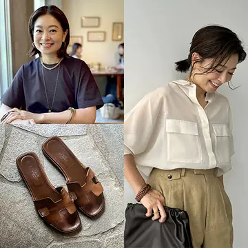 「ワンツーコーデがあっさりして地味になる……と感じたら、メリハリのきいたコントラスト配色に頼るのが手っ取り早いです。私自身、秋冬は淡いベージュやグレーでトーンを揃えるニュアンスカラー配色が好きなのですが、それはカシミアやウールなど、リッチな素材で奥行きを出せるから。夏になるととたんに、メリハリ配色が増えます。夏のコットンやリネンのさらっとした無地どうしの服を合わせるときは、色のコントラストでメリハリを出そう、という作戦です」