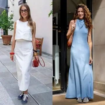 なんと、前出のサンドリーヌと姉妹だそう(なんておしゃれな姉妹でしょうか)。サンドリーヌと真逆の「上が黒、下が白」スタイルですが、スカートは結構甘めなティアードデザインであるにもかかわらずすっきり大人な印象にまとまっているのは、ひとえにシャープな黒トップスのおかげ。ここで華奢なサンダルではなくコンバースを合わせているのも甘さのセーブに効果的。