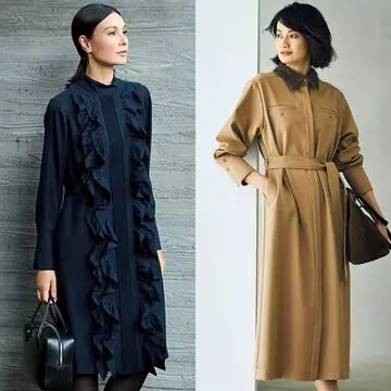 冬のおしゃれは、コートを脱いだ瞬間の印象が大切。柄ワンピースなら、コートの中はこれ1枚で華やぎが完成。キャミワンピースやシャツワンピースは、ニットを重ねることで着こなしに奥行きが生まれ、ぐっとあか抜けた印象に。一枚でも、重ねても、大人のための華やぎワンピーススタイル。