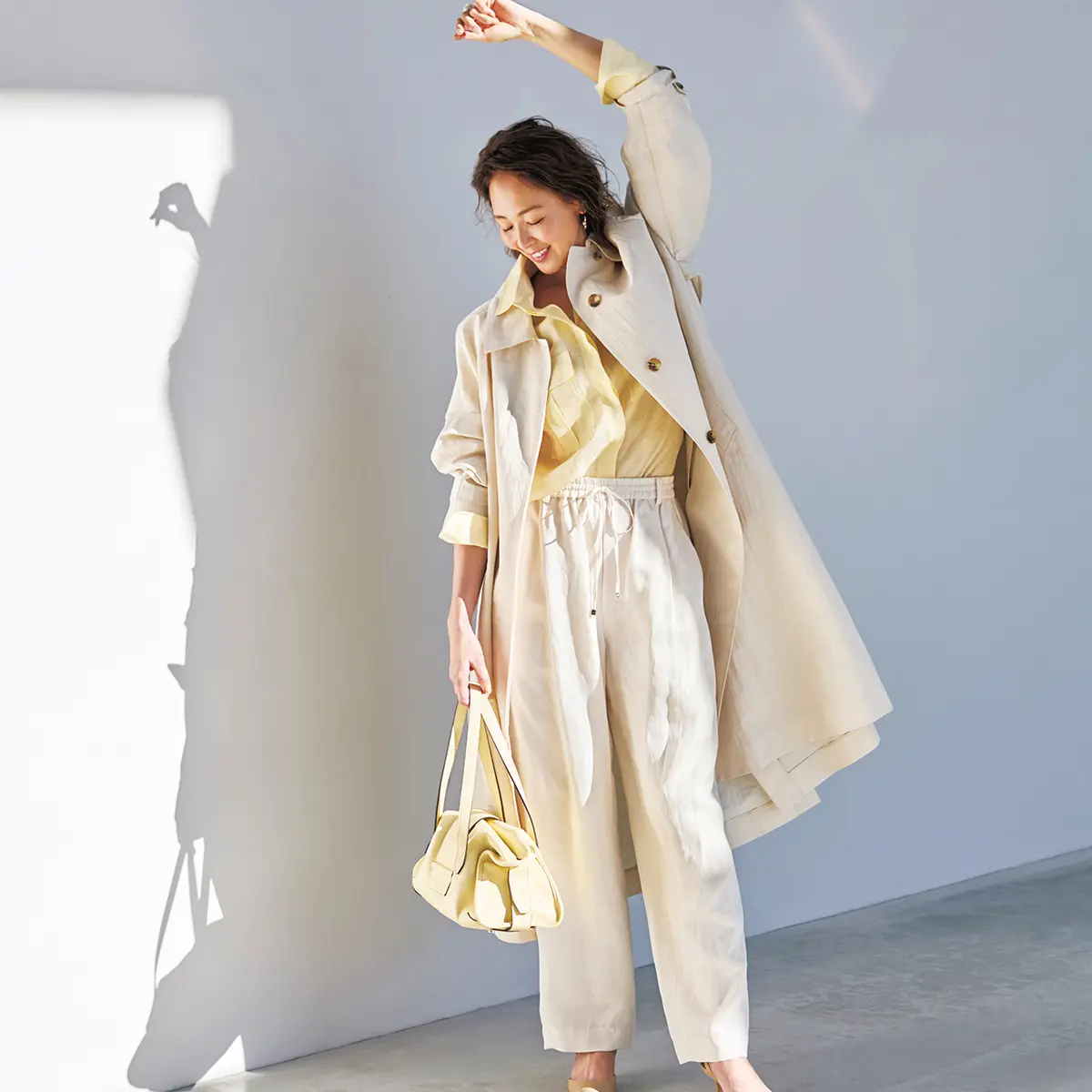 エアリーな軽快さと微光沢が特徴の春コート