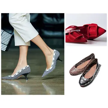 ベージュのつやめき小物が華やかな存在感を放つ