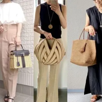 主役級スカートがワントーンコーデを格上げ!大人の上品スタイルにぴったりのかごバッグやアクセサリーも夏らしい。