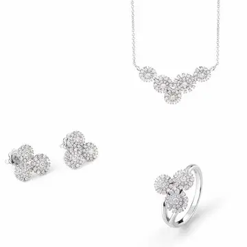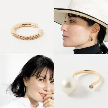 マドモアゼルが愛したカメリアの花を、オープンワークで表現したシリーズ。リングは、花を一輪、指の間にはさんだように見えるデザイン。好みの位置につけられるイヤカフも、風に舞うかのように軽やかで、装着感も心地よい。