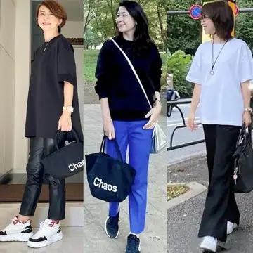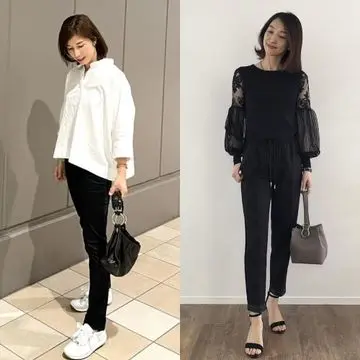 パンツスタイルがおじさん化してしまう一方で、フェミニンな服は、イタさとのせめぎ合いです。透け感のある黒のブラウスやレザー素材のフレアスカート。モード感のある甘さなら、ぐっとおしゃれに着地する。スポーティなブルゾンとのミックスコーデも効果的です。