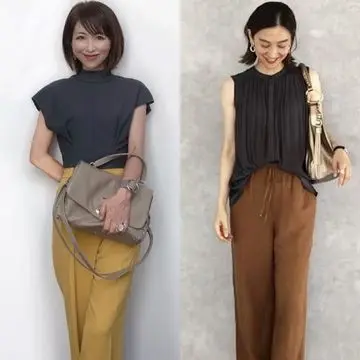 ベーシックゆえに女らしさが不足しがちなテーパードは、トップスの色や素材、デザインでフェミニンな要素を加え華やかな着映え効果をねらって。