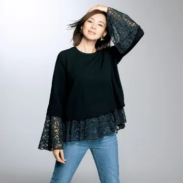 狭めのネックラインと袖のボリューム感が絶妙なバランス!