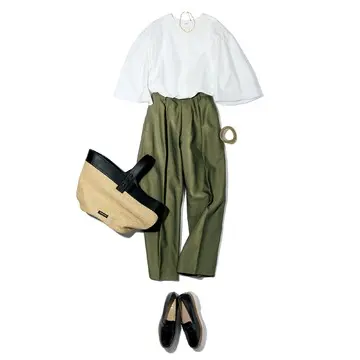 少ないアイテム数で着映えするのが賢い大人のワードローブ術。今どきのスポーティな雰囲気が漂うトップスに、シルエットの異なる ボトムを合わせて、小柄がシャキッと軽快な着こなしを実現!