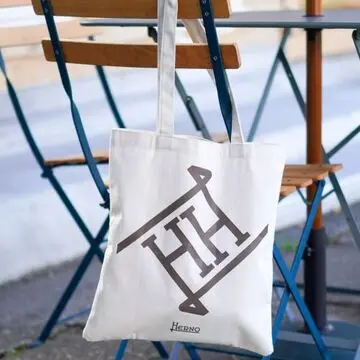 グレージュのロゴが大人っぽくってシックな雰囲気のヘルノ×エクラのトートバッグ。しっかりとしたキャンバス地は、メインバッグとしても使えそう。