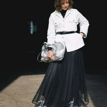 “ツヤ&透け素材”で抜け感をプラス