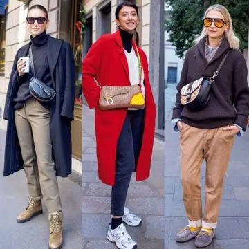 ベーシックカラーのネイビーとベージュを組み合わせて品よくまとめたコーディネート。仕立てのよいコートは絶妙なハーフ丈と控えめな襟が特徴で、フロントを開けて着ても様になる。カーディガン感覚でさっとはおれるラフさもいい。ボトムにチノパンを合わせればシックなプレッピースタイルに。お供はどんな装いともマッチする上品なフェンディのバッグ。ブラウンの靴でリッチに仕上げて。