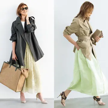 大人に必要な“華”と“しゃれ感”をプラス! スタイリスト・福田亜矢子さんが選ぶ、この春の即戦力になる<ロングフレアスカート>。ウエストデザインと美しい光沢感が優雅なスカートは、カーディガンをあわせてこなれた装いに。