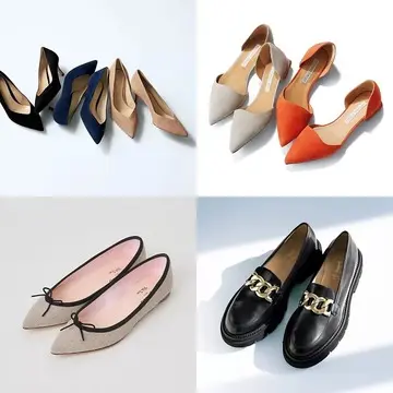 フロントはトラッドなローファー、かかとはストラップ使いというギャップがおしゃれ上級者の印象に。ベーシックな黒スカートでも、フロントのレースアップ&キルトによって華やかに見せてくれる。