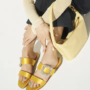 アラフィー世代の編集部スタッフの“ひと目惚れ”アイテムをピックアップ。今回は、トッズの「トッズ バレリーナ バブル」とエンポリオ アルマーニのラフィアのサンダルを紹介。