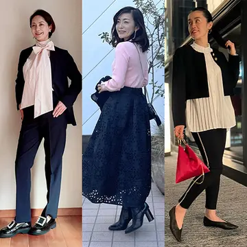 シックで女らしいボウタイブラウスは、メンズライクなカーゴパンツを合わせて、新しい印象で着こなしたい。カーゴパンツはすそ絞りデザインがトレンド。ぐっとフレッシュな表情にアップデートできる。