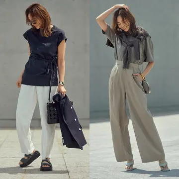 優しく上品な着こなしが楽しめる、ニュアンスカラーの極上ゆるパンツがこの夏のおすすめ。全身コーデのポイントは、ワントーンやグラデーションを意識すること。色や小物の合わせ方などもこちらのお手本をチェック!