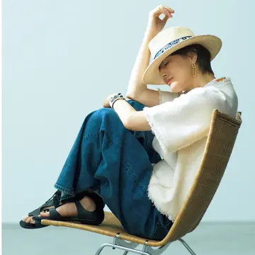 これからの季節に出番が増えるアイテムと言えば、帽子。コーディネートのアクセントに活躍する一方で、「いまいちすっきり見えない」「バランスをとるのが難しい」という悩みの声も。実は、大人の帽子がこなれて見えるかどうかは「髪とのバランス」にかかっている!今回は、帽子上手なエクラ 華組が、帽子とヘアのベストバランスを伝授。1人目は、こなれカジュアルな着こなしにファンが多い、梁瀬理砂さん。