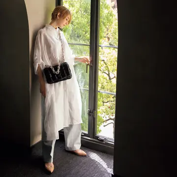 撮影/長山一樹(S-14) ヘア/ Dai Michishita(Sun and Soil) メイク/佐々木貞江 スタイリスト/村山佳世子 モデル/ブレンダ 取材・原文/三尋木奈保 撮影協力/東京エディション虎ノ門 ※エクラ2023年9月号掲載