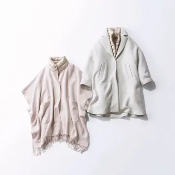 「全身がシンプルすぎると、様にならなくなってきたと感じる今日このごろ。胸もとのディテールやパイピング、表情のある素材感が効いていて、スタイリングにひとさじの甘さを足してくれそう。チェックのワイドパンツやデニムなどと合わせ、冬のコーディネートをアップデートしたいです」。アームが太めだから合わせるインナーを選ばないのも重宝。