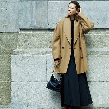 大人に似合うデザインも豊富に登場しているミドル丈のコート。今回はコンサバなイメージのあるツイードのコートを主役にした着こなしを披露。