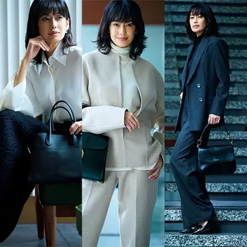 撮影/酒井貴生(aosora) ヘア&メイク/三澤公幸(Perle management) スタイリスト/池田奈加子 モデル/高橋里奈 構成・原文/宮崎桃代 ※バッグのサイズは(縦×横×マチ)で単位は㎝です ※エクラ2023年11月号掲載