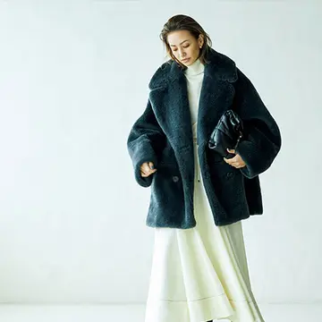 いつものスタイルにはおるだけで、さりげない華やかさを足してくれるボア素材。軽快さのある丈感で、ぐっと着こなしやすく。