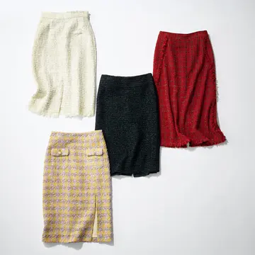 今季注目の“進化系タイト”から、おすすめのきれい色だけを厳選。圧倒的な存在感を放つきれい色はタイトなラインと相まって女性らしさ抜群。ヴィヴィッドな色を効かせても、くすみ色でほかのアイテムとなじませても。