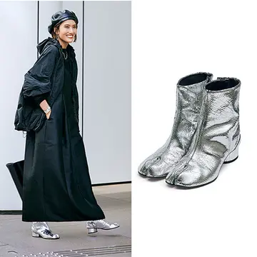 アイボリーのショートブーツでクリーンな抜け感を意識します――エディター 向井真樹さん
