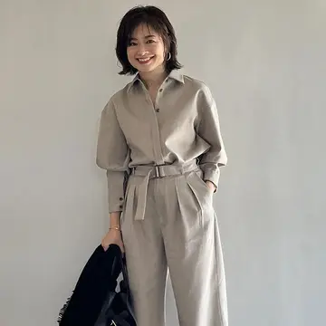 三尋木さんの場合は、ハリ感のあって美しいシルエットのドゥロワーのパンツできちんと感をキープ。ニットもドゥロワーのもので、こちらもルーズすぎずきれいめです。