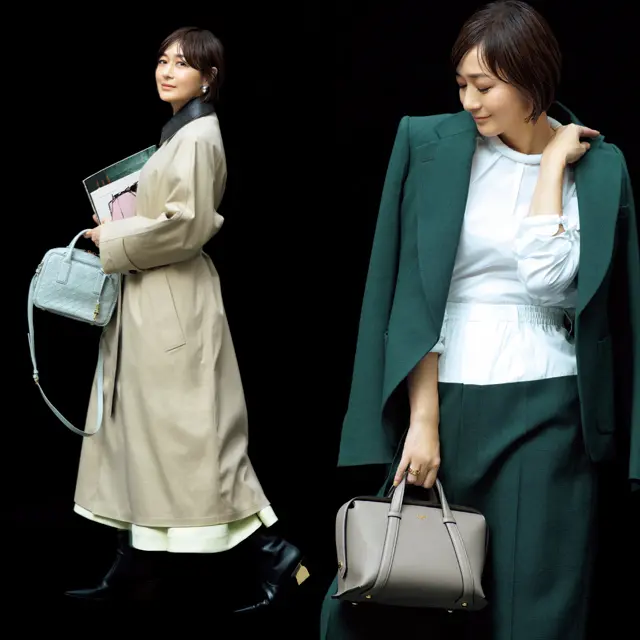 撮影/長山一樹(S-14) ヘア&メイク/野田智子 スタイリスト/斉藤くみ モデル/富岡佳子 取材・原文/坪田あさみ 撮影協力/プロップス ナウ ※( )内の数字はバッグのサイズで、(縦×横×マチ)を表し、単位はcmです。 ※エクラ2024年2・3月合併号掲載