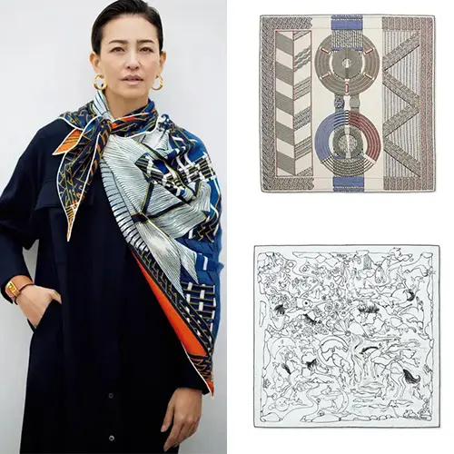 (左)ニュアンスのあるブルーと繊細なラインがエレガント。エッジの効いたオーバーサイズの《ケリー》バックルのきらめきも上品。