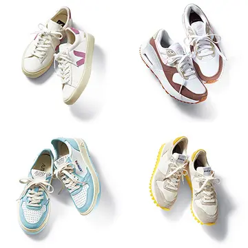 春色のスニーカーで上品なセットアップが軽やかにしゃれ見え!