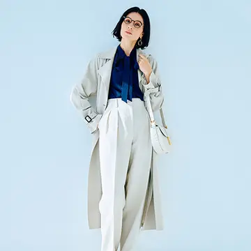特に膝下が長く見えるように工夫したテーパード。ハイウエストが重心アップに貢献し、バランスよく見える。絶妙なくるぶし丈でお直しいらずで着られるのも魅力。