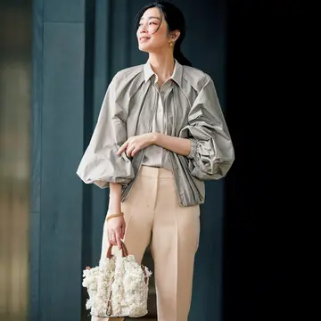 重ねるだけで、瞬時におしゃれニュアンスがアップ! 今季は、カーディガンではなく「極薄ブルゾン」を取り入れたい。ツヤ素材のタイプを選べば、ベーシックカラーでもエレガントな着こなしがかなう。
