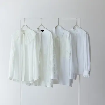 素材やディティールが進化した白いフェミニンブラウス。さらっとまとうだけで表情をいきいきと見せ、自信まで授けてくれる。立体感のあるプリーツ加工で、甘さだけではないモダンな印象に着こなせる。