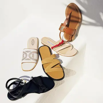 靴好きスタイリストの戸野塚かおるさんが、ひと夏を託すのにふさわしい上品な極薄フラットサンダルをピックアップ!