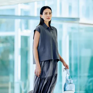 【初夏のツヤめきボトム】シルクのツヤスカートは異素材ミックスコーデでモダンに
