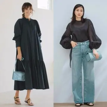 このワンピースを目にした瞬間、リゾートホテルが心に浮かんできました。日常から脱出してゆったりした時間を過ごすのにぴったり。ただリラックス一辺倒なわけではなく、袖にぴりっとカフスが効いているところなど、オンにも着たくなるポテンシャルの高い一枚です。(副編S川)