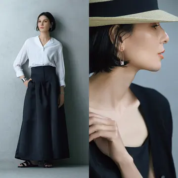 夏らしい素材を「黒」の緊張感とともにまとえば、涼やかでいて、今どきのしゃれ感とラグジュアリーをかなえられる。その着こなしのコツを、スタイリスト池田奈加子さんに聞いた。