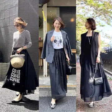 1枚で2倍楽しめる、リバーシブルスカート。ツヤ素材とシアー素材で素材感にコントラストをつけ、さらに同系色ながら微妙に色のトーンが違うのがこだわり。