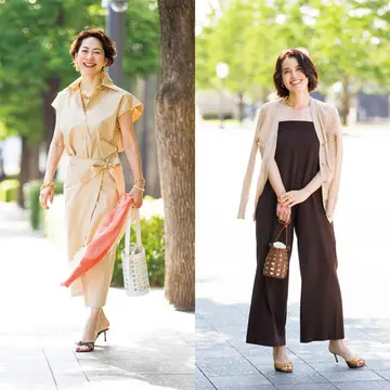 おしゃれが大好きでさまざまな着こなしを楽しんでいるエクラ 華組が、この夏の最愛スタイルで登場。淡ベージュと黒のワードローブを、それぞれが夏らしい着こなしに。小物使いも必見!