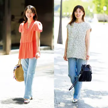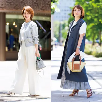 エクラ 華組が、この夏の最愛スタイルで登場! 今回は、夏らしい柄と色を取り入れたお二人のコーデをピックアップ。大人だからこそ似合うペイズリー柄や、爽やかな夏色のストライプ柄で街へ。