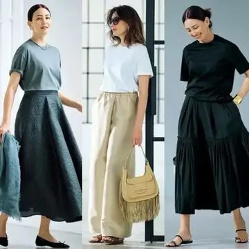 ラフなのに清潔感とリッチ感があるミラノマダムたちのTシャツスタイル。年を重ねると難易度が上がるカジュアルアイテムも、ベルトや小物使いに大人ならではのセンスをちりばめれば、もっと楽しめる!