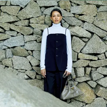 ニット(10月展開予定)¥19,910/ネイヴ シャツ¥39,600/カオス GINZA SIX(カオス) パンツ¥110,000/ザ・ウォール ショールーム(ジア スタジオ) サングラス¥47,300/アイヴァン 東京ギャラリー(アイヴァン) ピアス¥209,000・リング¥407,000/リトルリーグ インク(スピネリキルコリン) バッグ¥137,500/ピエール アルディ 東京(ピエール アルディ)