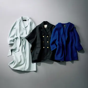 ひとひねりある襟もとがもたらす新しいバランスで、装いの鮮度も上々。この冬は、顔まわりに華をもたらす襟もとコンシャスなコートが欲しい! カオスのショートコートは大きなスタンドカラーが圧倒的インパクト。