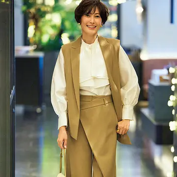 カジュアルな同窓会なら、今どき感あるジレのセットアップが鉄板。上下おそろいのきちんと感がありながら、トレンド感も文句なし。リュクスなシルク混のロングジレコーデを紹介。