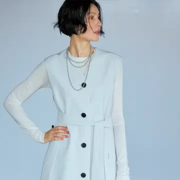 アシンメトリーなベルト飾りでくびれをモダンに演出