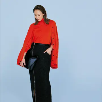 大人はスカートを“かっこよく”はく。その決め手は、「知性と色気」を気高く共鳴させること。レースのスカートを選ぶなら、レザージャケットを合わせて強めのコントラストを。