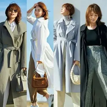 おしゃれの輪郭を決定づけるアウター。リュクスなコンサバ視点で選ぶなら、大人にふさわしいロング丈に軍配が。トレンチコートはオーバーシルエットが最旬。ベルトで引き締め、品よく軽やかに!