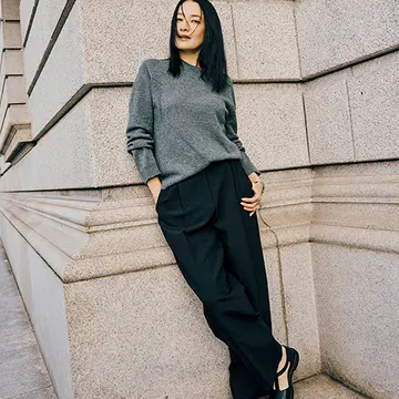 トップス¥336,600・中に着たトップス¥336,600・パンツ¥218,900・靴¥166,100/ザ・ロウ・ジャパン(ザ・ロウ) イヤリング¥946,000・リング(右手)¥583,000・(左手)¥605,000/カルティエ カスタマー サービスセンター(カルティエ)