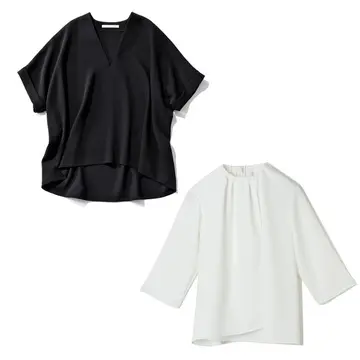 体のラインを拾いにくい立体的なシルエット、肩まわりや二の腕をカバーするドルマン風の切り替えと、大人にうれしいこだわりが詰まったフレンチスリーブT。つるんとした上品なツヤ感は、Tシャツのカジュアル感が苦手な人にもおすすめ。